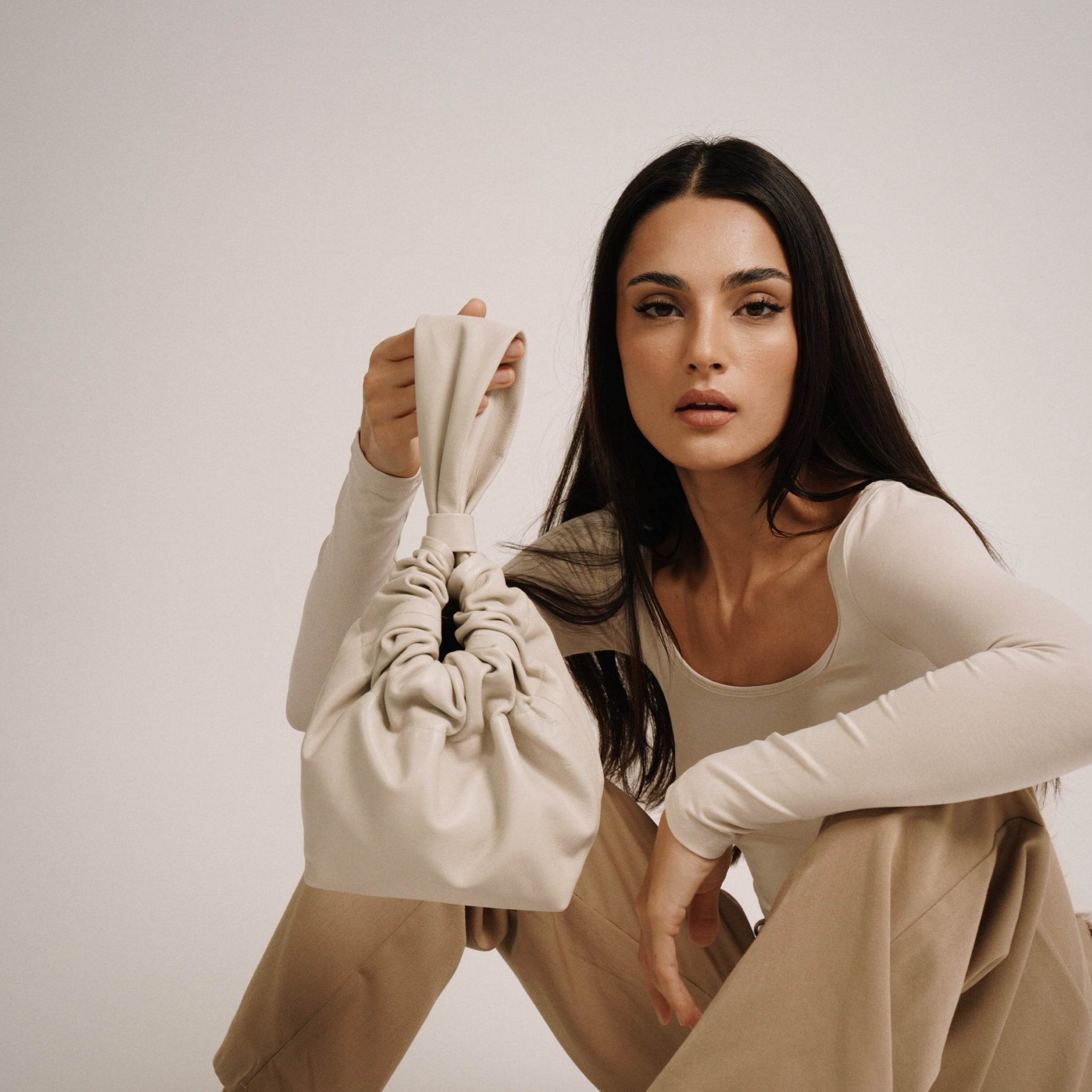 Our Italian lambskin is a delicate, ultra smooth and buttery leather with a polished finish. This material is prone to the occasional scratching if not handled with care. The bag can be spot cleaned with a damp cloth. Avoid exposure to abrasive surfaces and store the item in its dust bag.